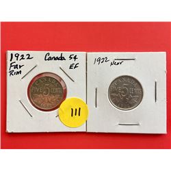 1922 (Far Rim) & 1922 (Near Rim) Canada 5¢
