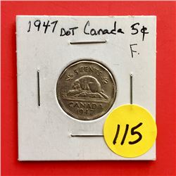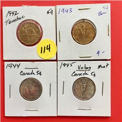 1942 (Tombac), 1943 (Tombac), 1944, 1945 Canada 5¢