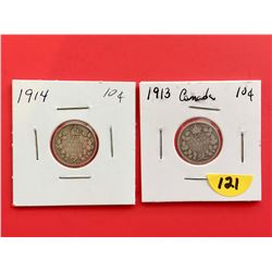 1916 & 1918 Canada Silver 5¢