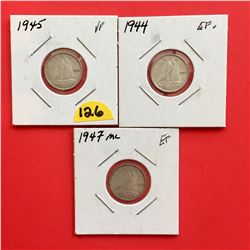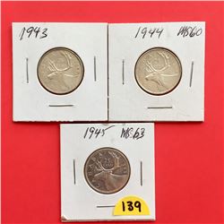 1943, 1944, 1945 Canada 25¢
