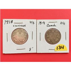 1918 & 1919 Canada 25¢