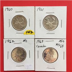 1960, 1961, 1962, 1963 Canada 25¢