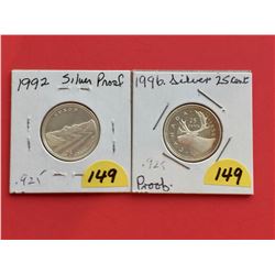 1992 & 1996 (Both Silver Proof) Canada 25¢