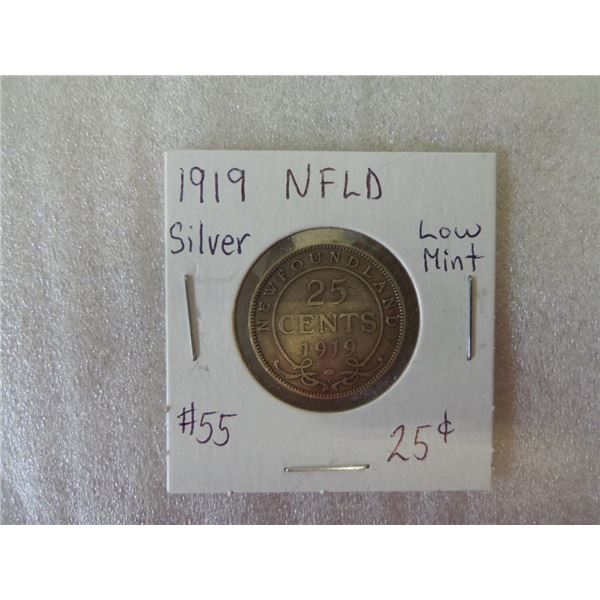 1919 NFLD Silver Low Mint 25 Cent