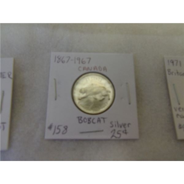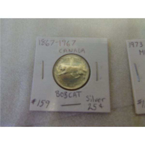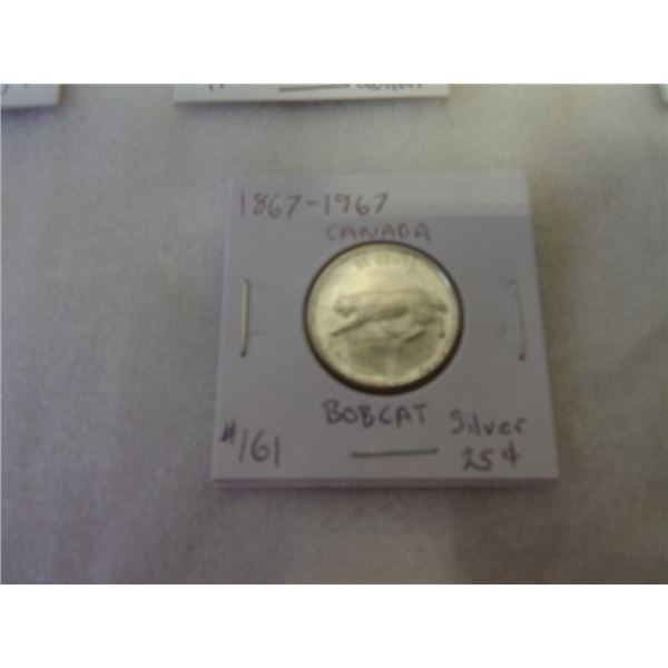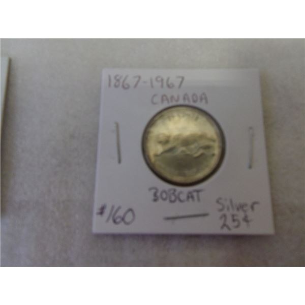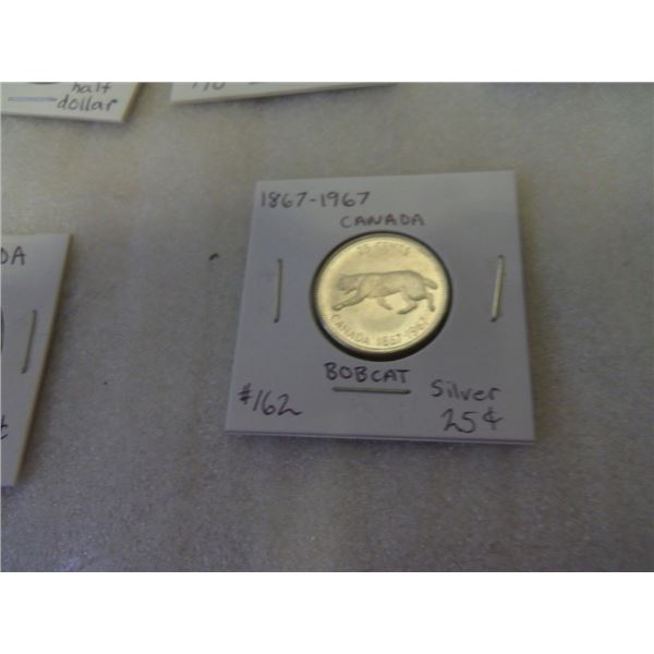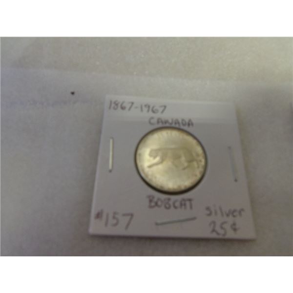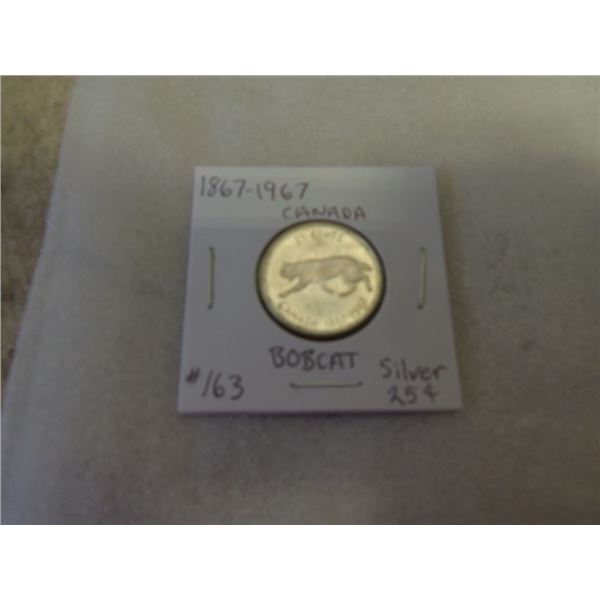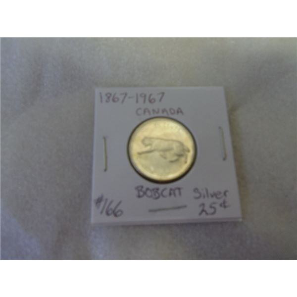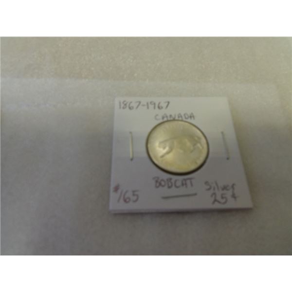 1867-1967 Canada Bobcat Silver 25 Cent Coin