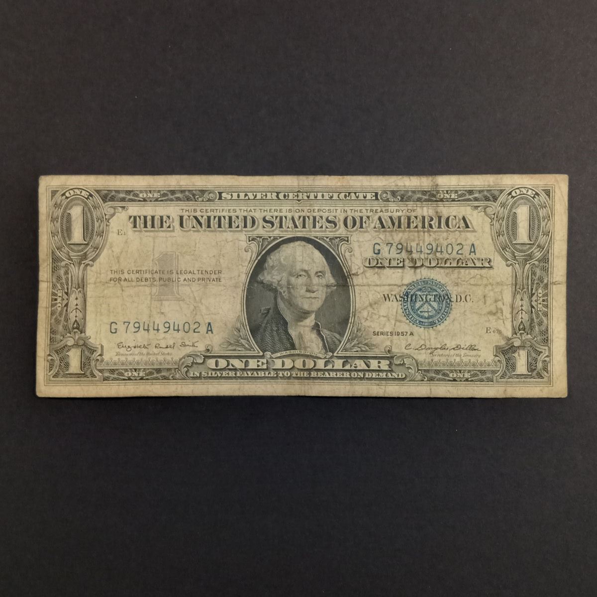 Collectible Faulty Alignment /Miscut Error 1957A US $1 One dollar silver certificate bill blue seal. #G79449402A. Condition fair.