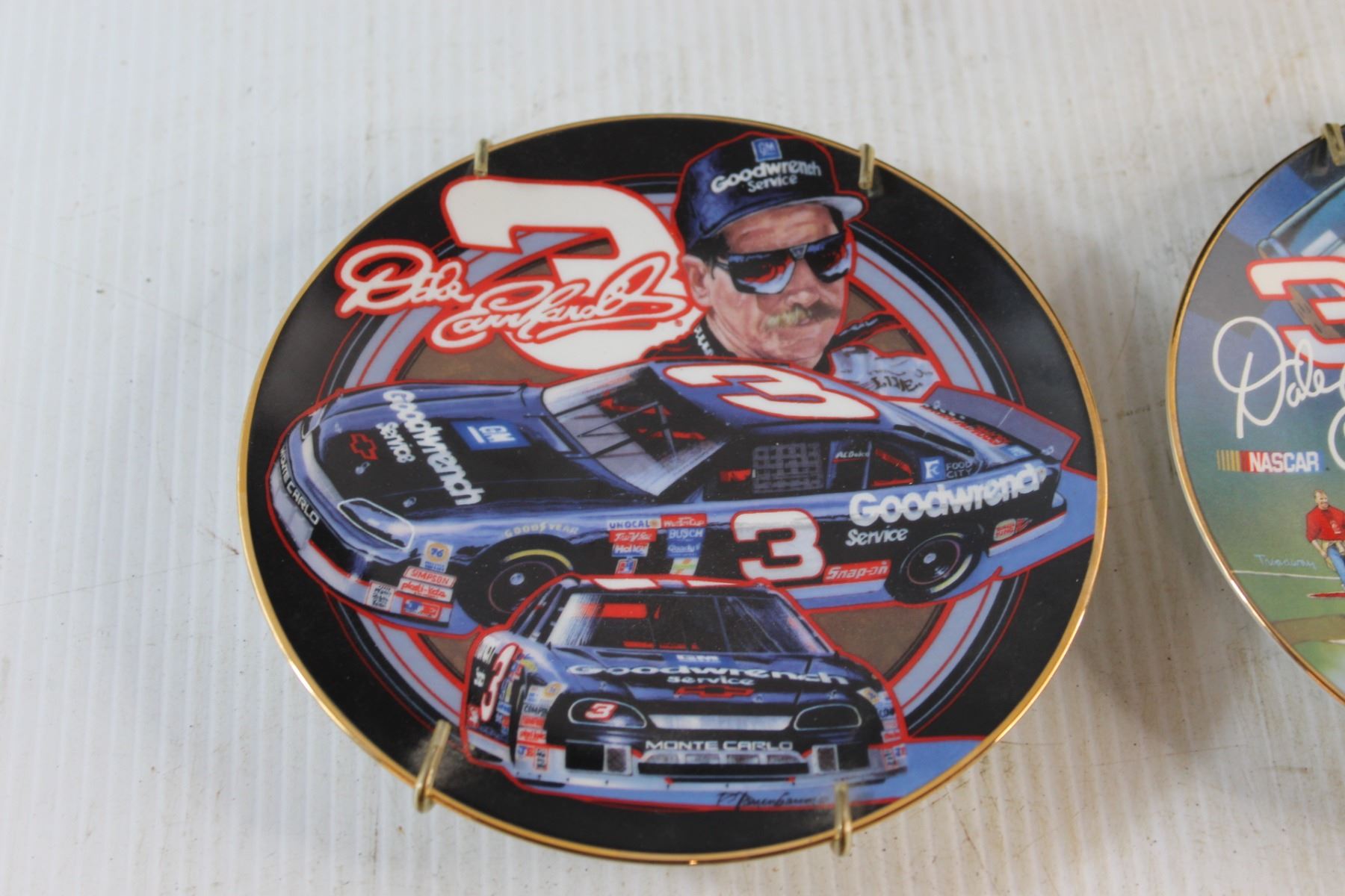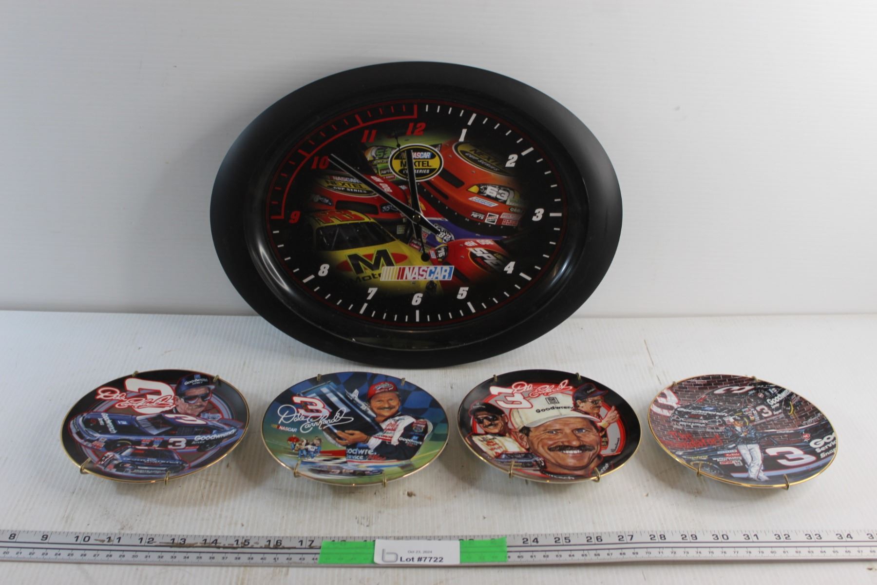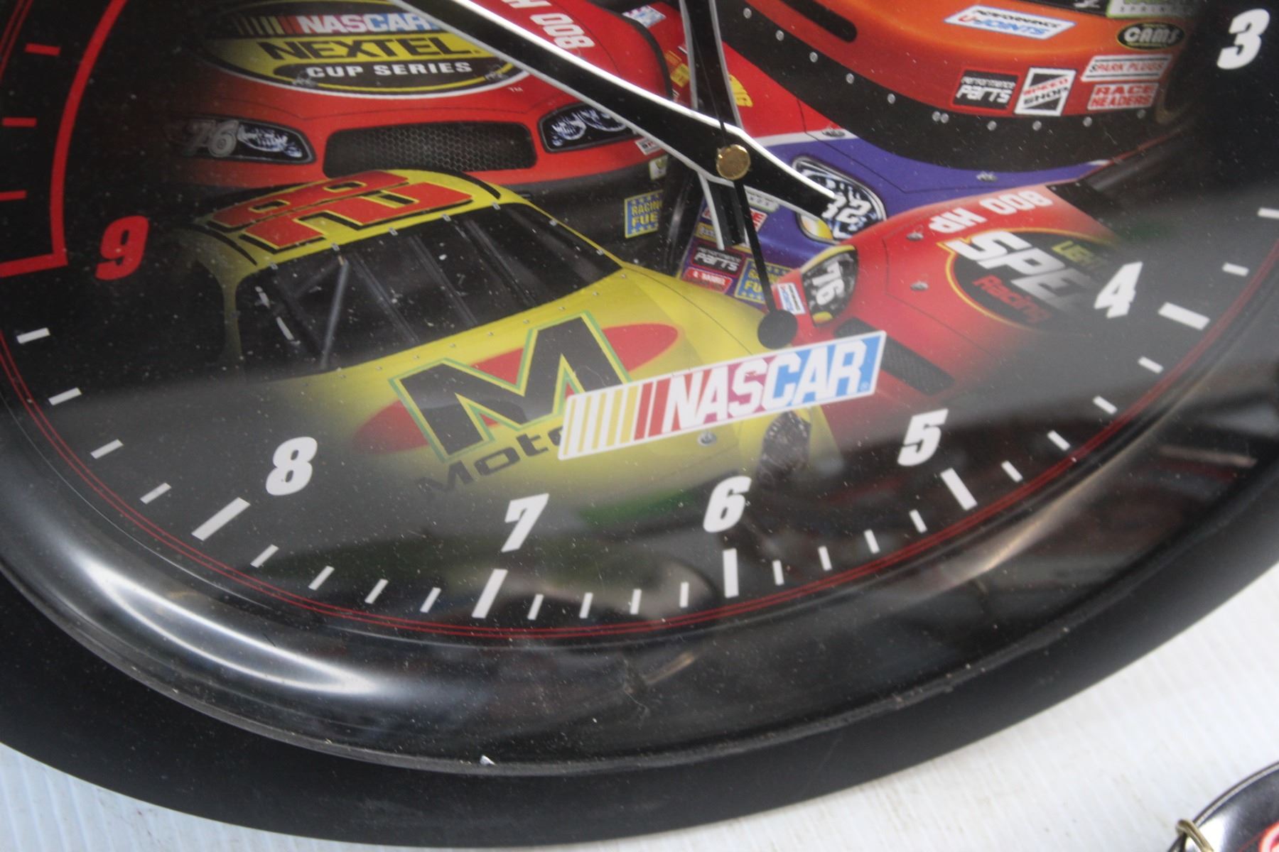 Collectible Nascar Clock - As Is and (4) Collectible Nascar Decorative Plates 6 1/2''