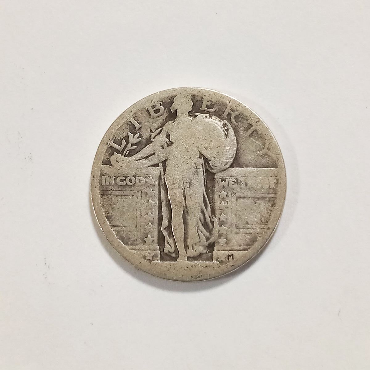Collectible US 1917-1924 Standing Liberty Quarter Dollar 25 cents Silver coin NO date visible. 90% Silver. Our opinion AG3.