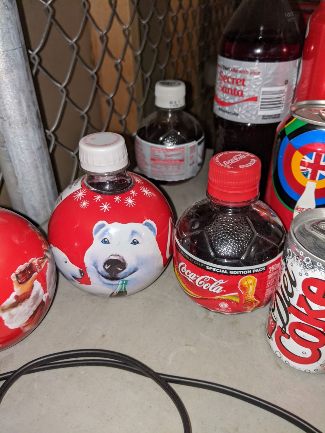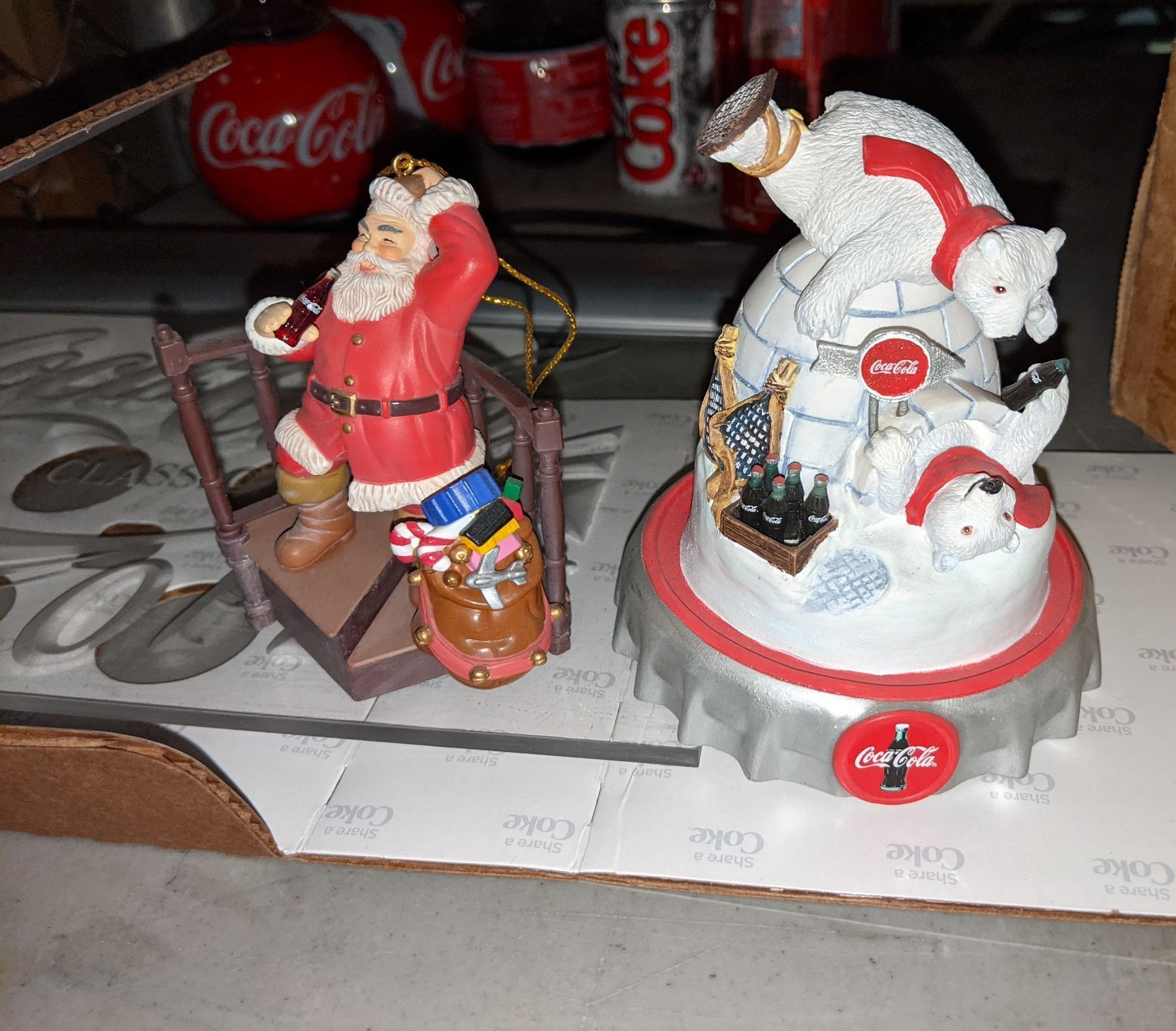 Collectible light up sign, Christmas ornament, and miscellaneous Coca Cola cans and bottles