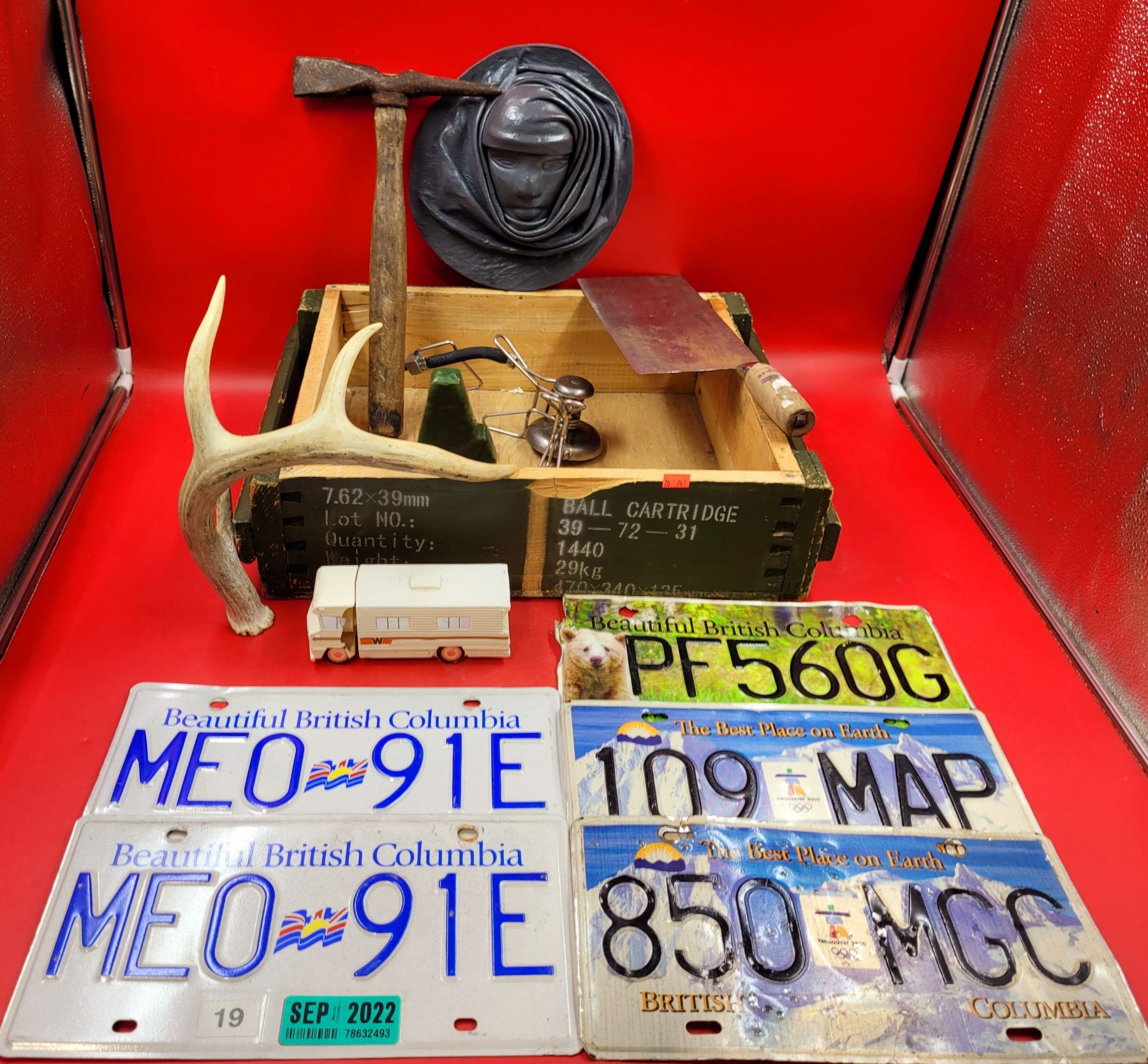 Collectibles Lot w/ BC License Plates, Antler, Cleaver, Avon Aftershave, & More