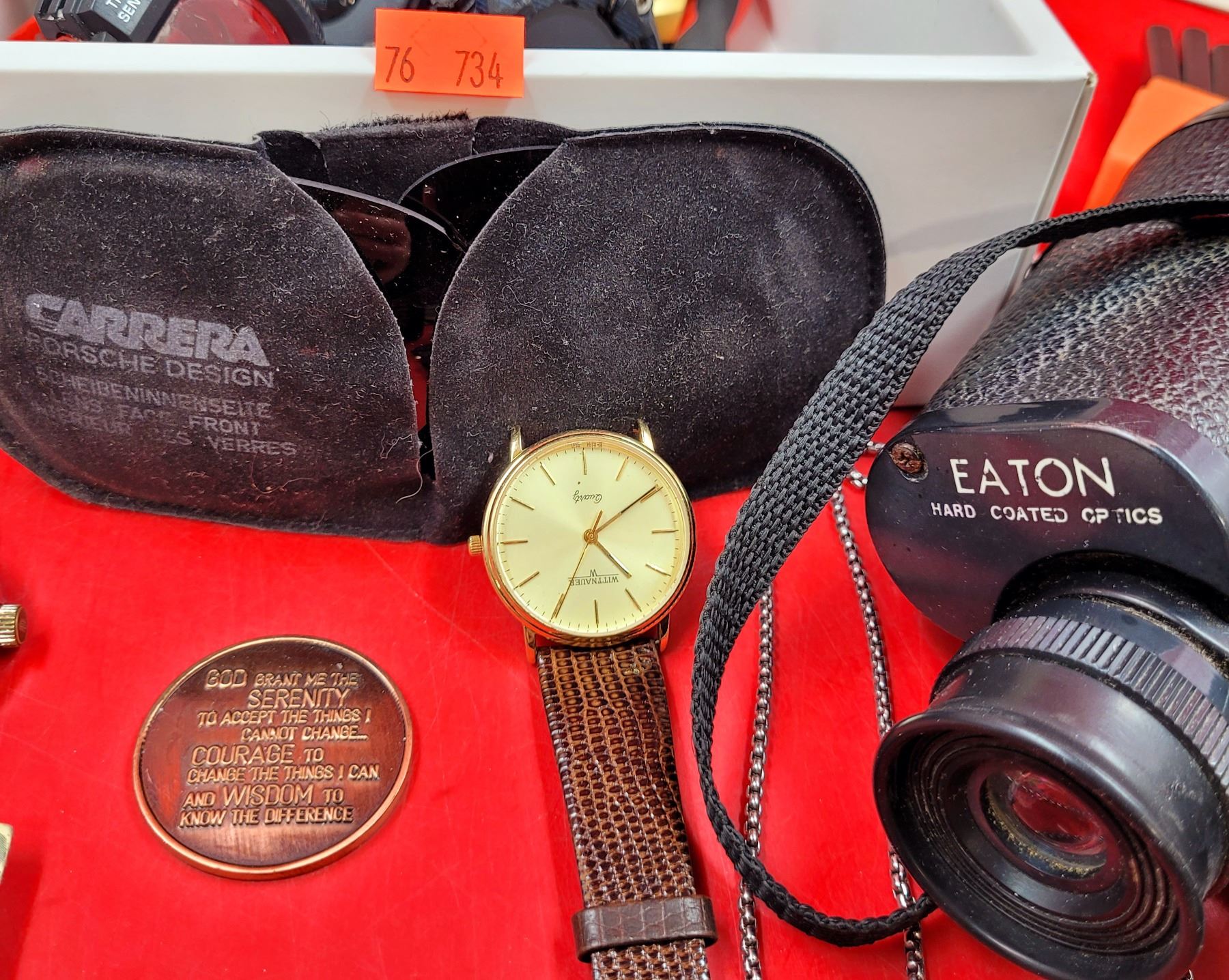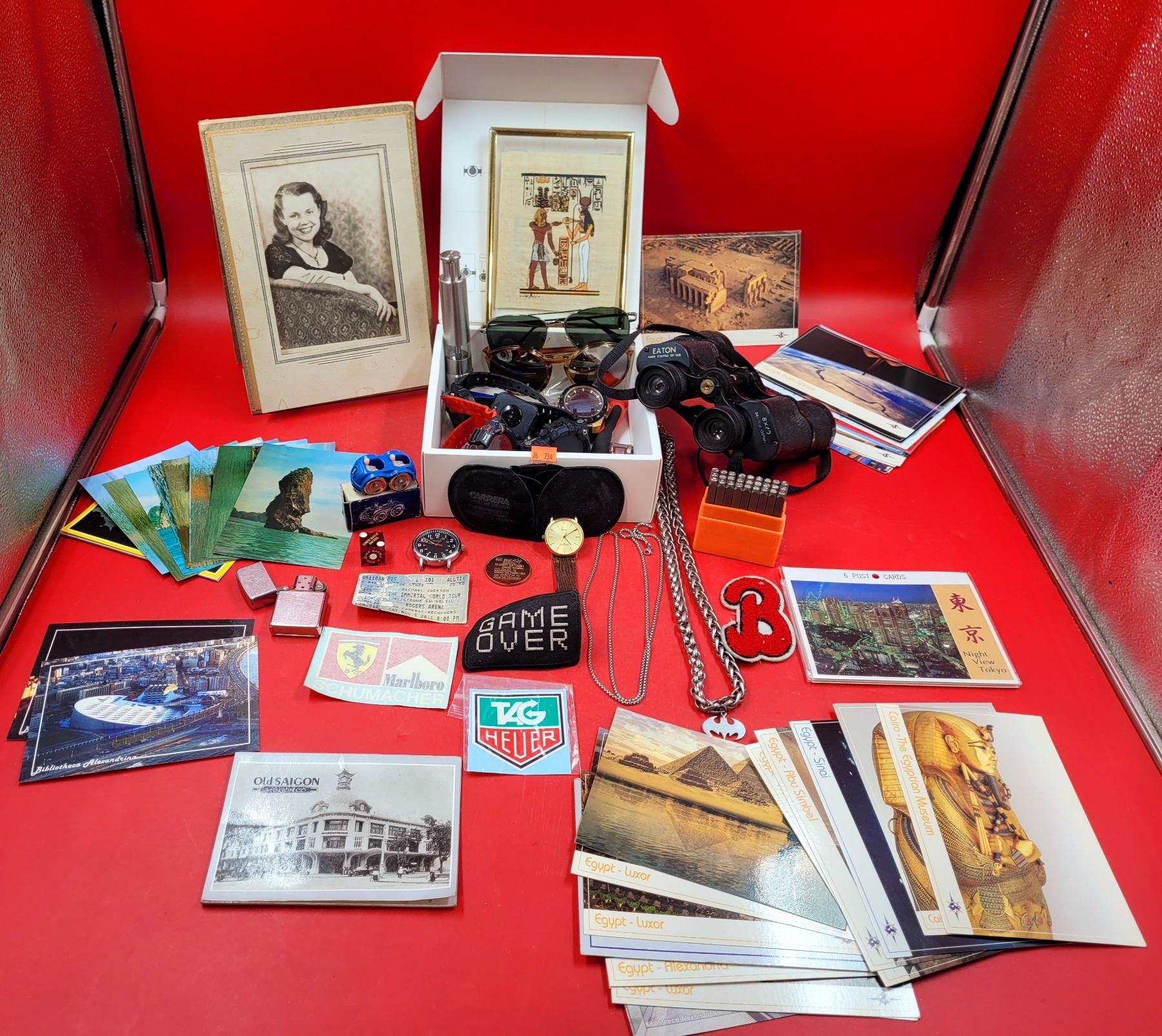 Collectibles Lot w/ Eaton Binoculars, Wittnauer Watch, Postcards, & More