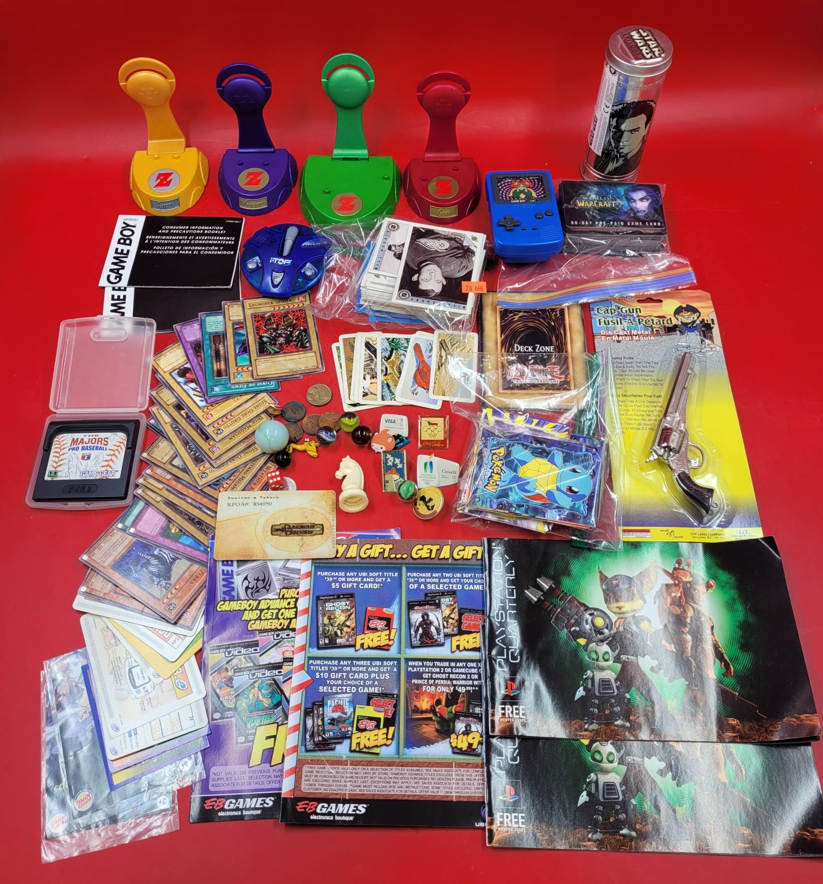 Collectibles Lot w/ Yu-Gi-Oh Cards, Cap Gun, Dragon Ball Z Stands, & More