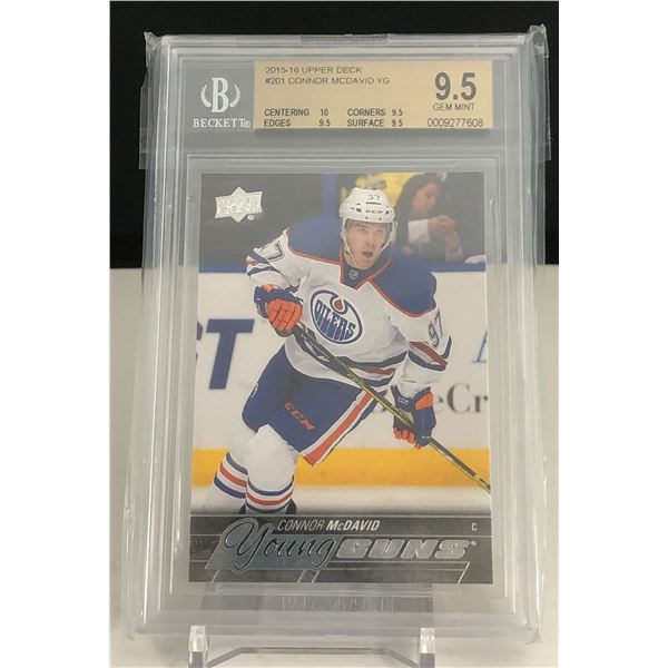 2015-16 Upper Deck Connor McDavid YG Rookie Card Beckett Graded 9.5 GEM MINT