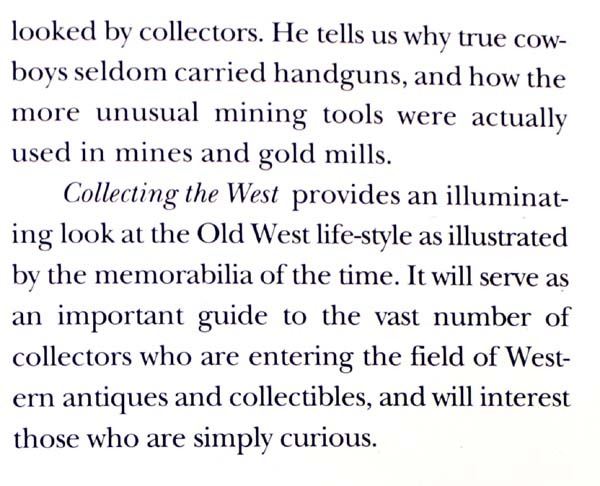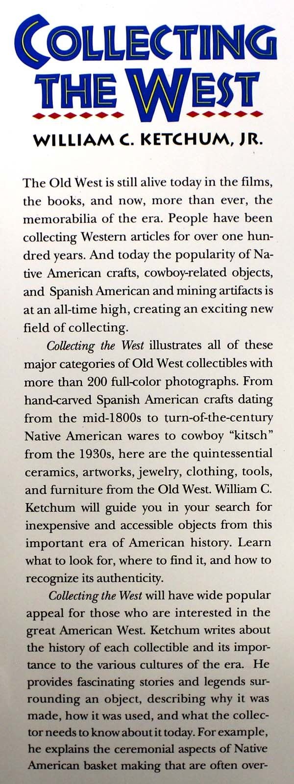 Collecting the West: Cowboy, Indian, Spanish American, and Mining Memorabilia by William C. Ketchum, Jr., hardback book c. 1993 FIRST EDITION, Crown Publishers, Inc. New York, comes in original book jacket, the inside page's corner has been bent off