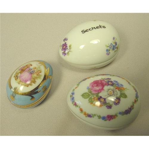 <tr><td>Title:Collection 3 Egg Shaped Limoges Trinket Boxes</td></tr>