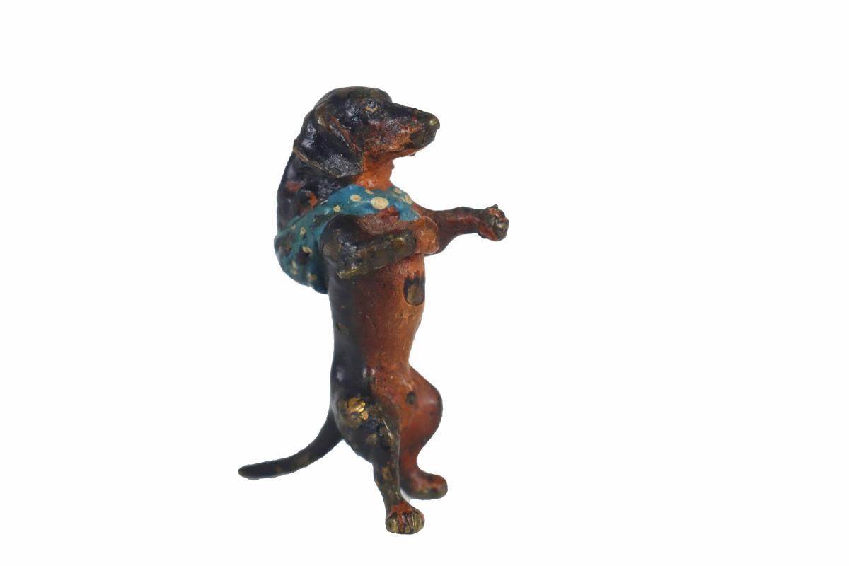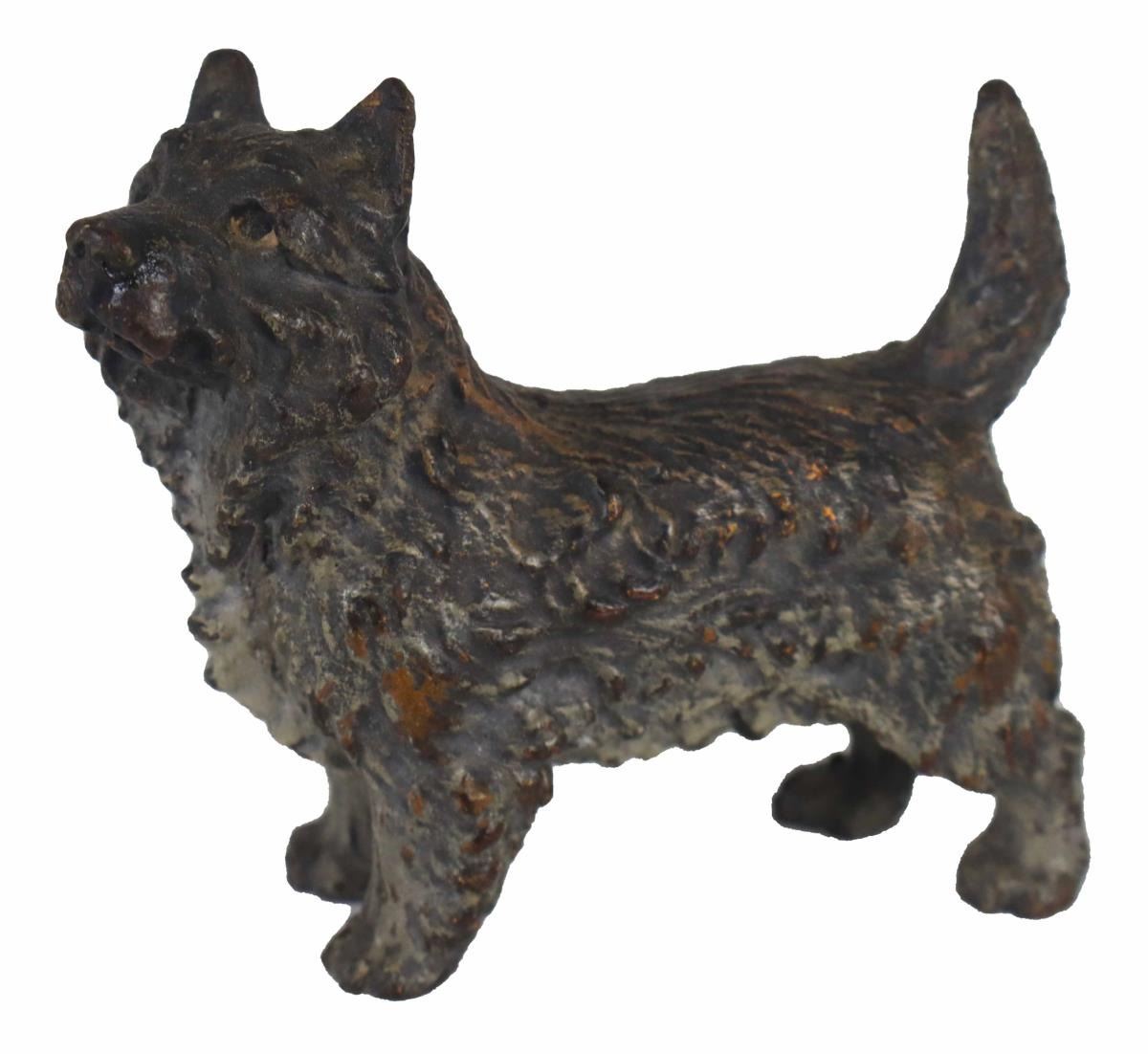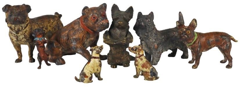 Collection of European 19th century bronze dogs, most of them cold painted, the two terriers are unpainted. Because cats and dogs are beloved pets of so many, they are probably the most popular of all Vienna bronze animals.