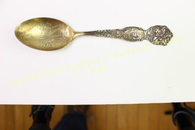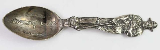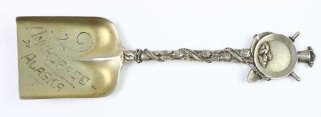 Collection 9 antique souvenir spoons8 mining related in sterling silver including San Francisco, Miles City, Anchorage, Hot Springs, Santa Cruz and Grant's Pass, a great collection, all showing fine condition. Est. 400-800