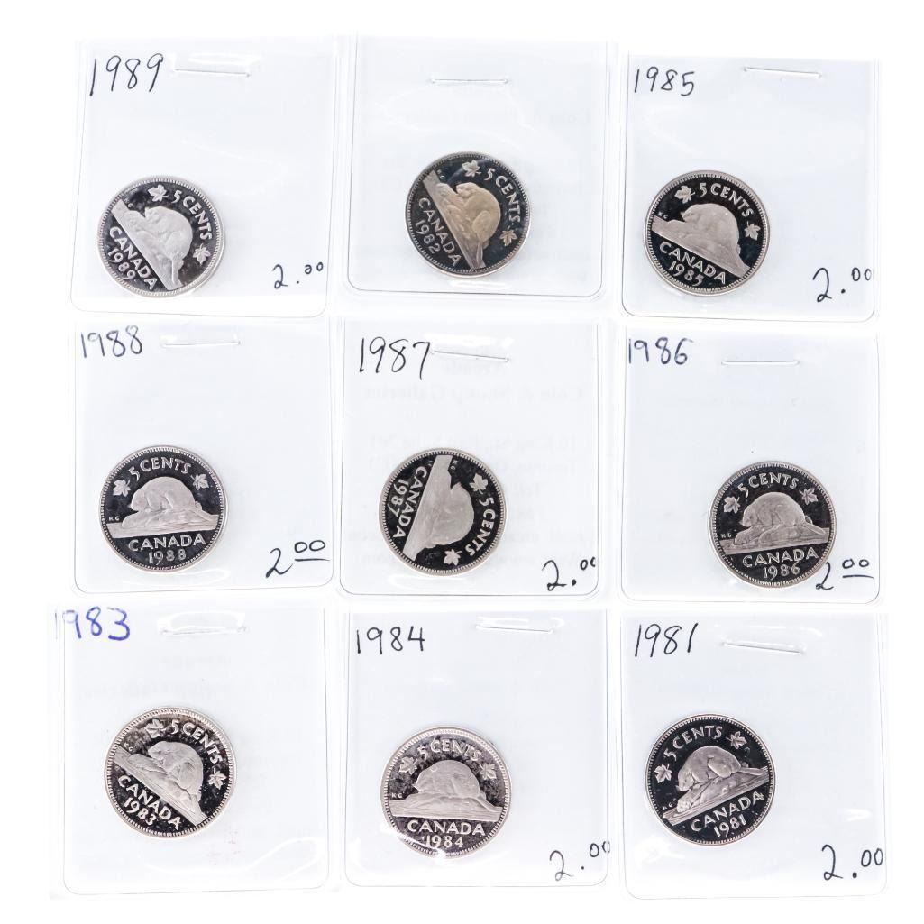 Collection - 9 x Canada Proof 5 Cents - 1981-1989-2000615