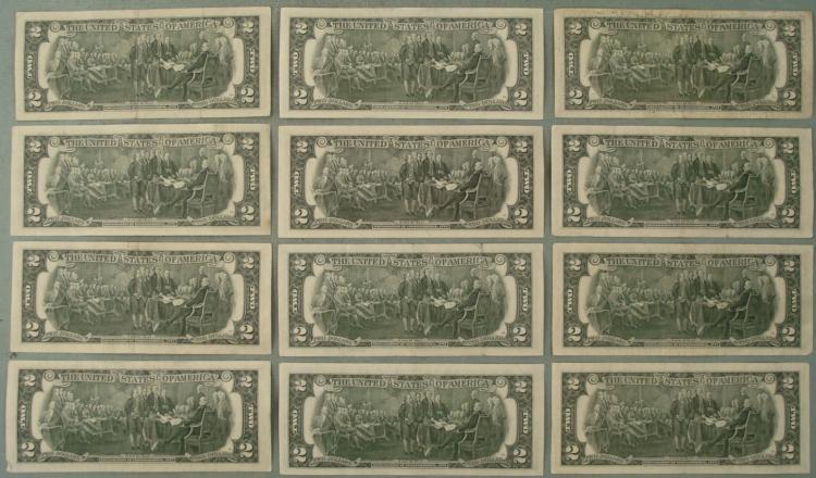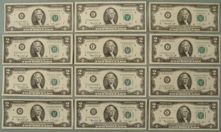 Complete Collection with All 12 Mint Marks of the 1976 $2 bill * Condition: Nice bills * Picture is representative of the bills you will receive