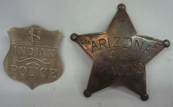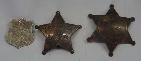 Collection Badges. To include: 2 - Arizona Rangers, Indian Police. Largest badge measures approx. 3 1/2'' diameter. Buyers Pay Actual Shipping and Handling Charges(see terms and conditions for more information).