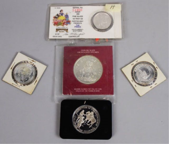 sterling coin, Apollo XII sterling, 1973 $5 Bahamas uncirculated, 1/2 troy on 50th Anniversary Disney Snow White coin and JFK/RFK silver coin memorative coin.