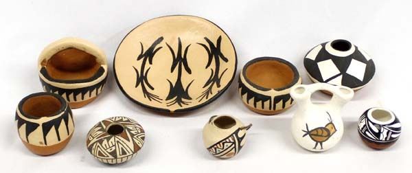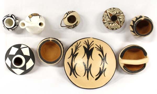 Collection of Native American & Mata Ortiz Pottery, largest measures 1'' x 4'', includes Santo Domingo Pueblo, Acoma, and Mata Ortiz
