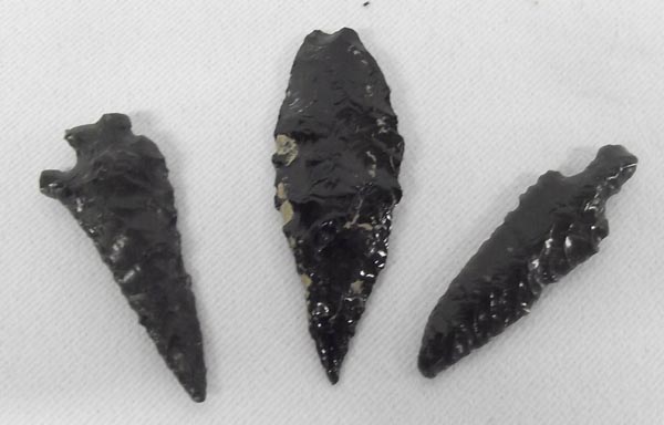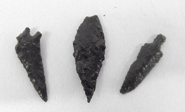 Collection Obsidian Arrowheads. 3 arrowheads largest measures approx. 1 3/4''L x 3/4''W. Buyers Pay Actual Shipping and Handling Charges(see terms and conditions for more information).