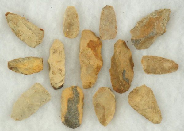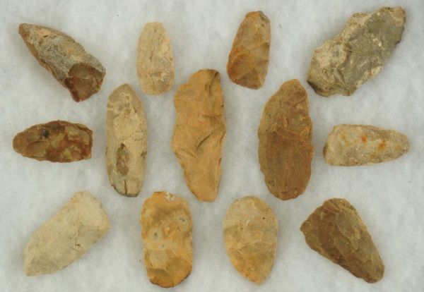 case measures 12 1/4" tall, 16 1/4" wide, 2" deep. Largest flint tool measures 4 1/4".