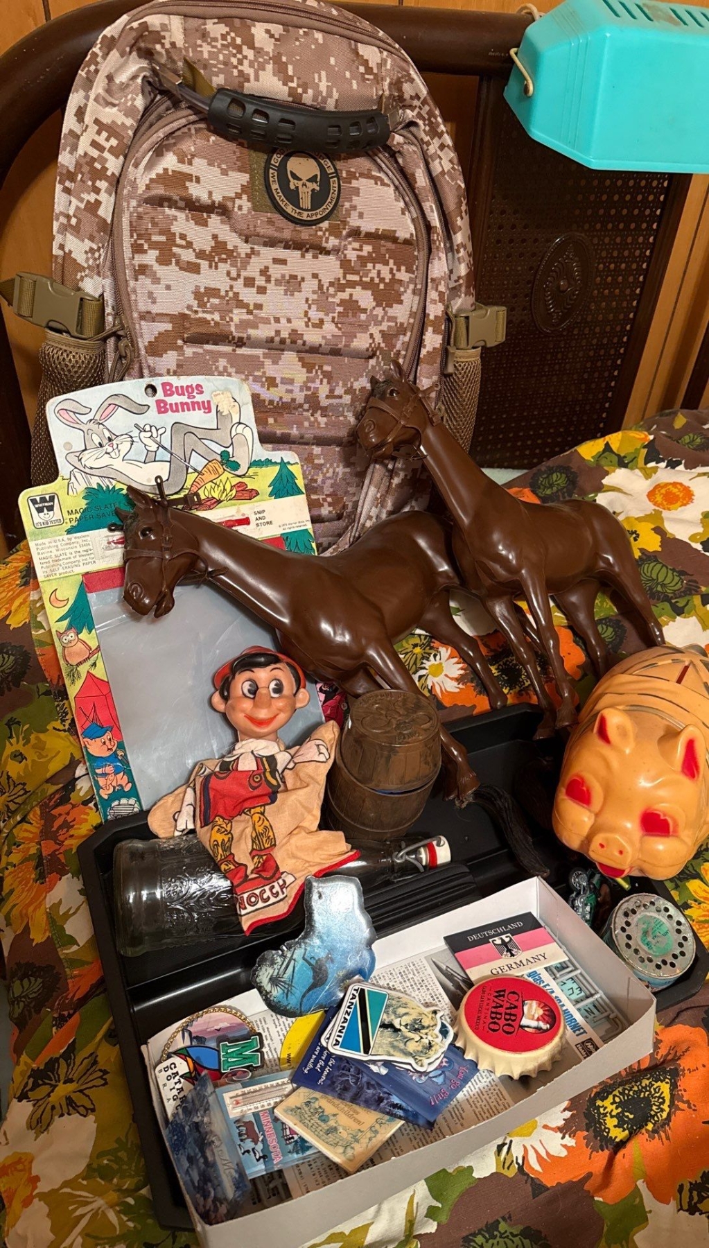 Collection Of Antique Toys- Barrell Of Monkeys, Piggy Bank, Fridge Magnets & More