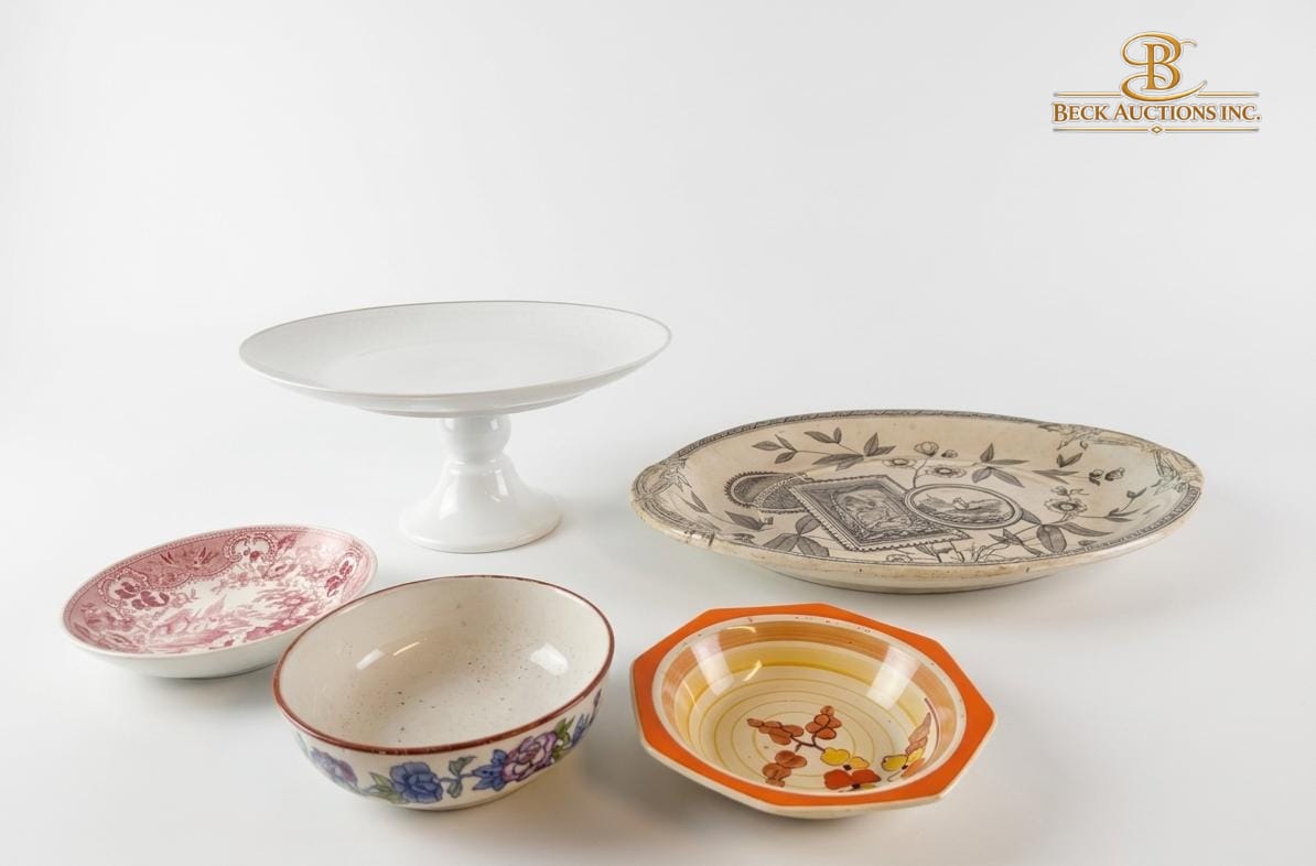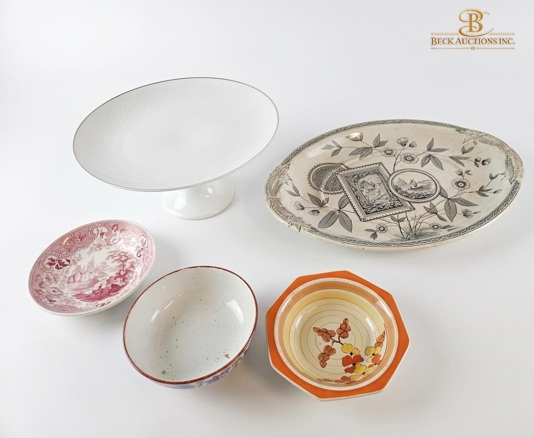 Collection Of Assorted Ceramic Dishes And A Footed Cake Stand.