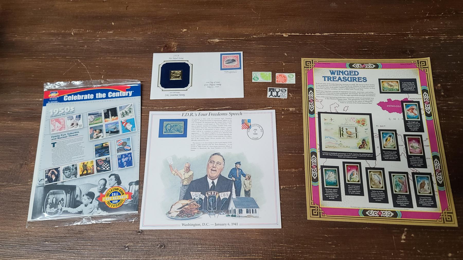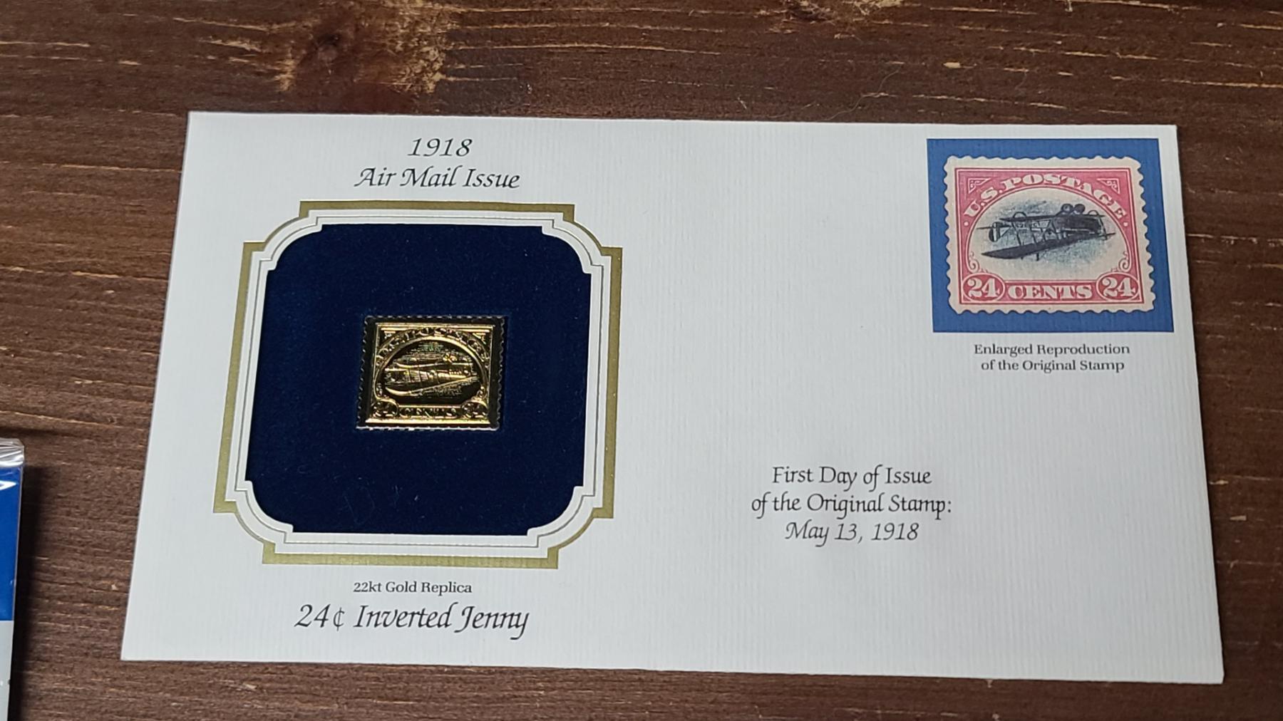 Collection Of Commemorative Stamp Sheets And 22Kt Gold Replica First-Day Cover Airmail Stamp