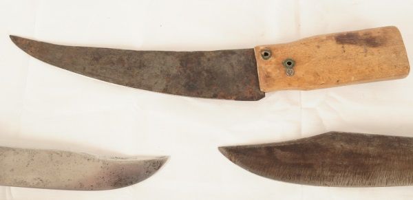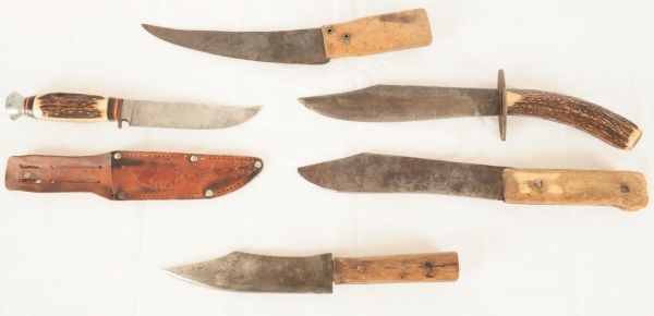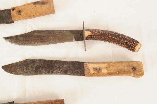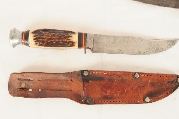 Largest knife measures 12 3/4" long One is Solingen made with Indian chief sheath.
