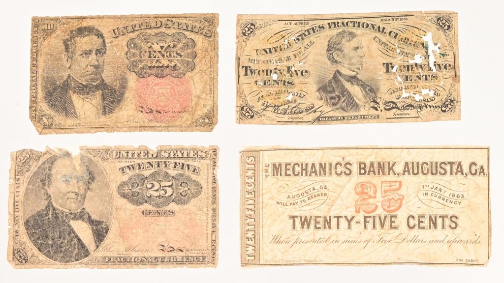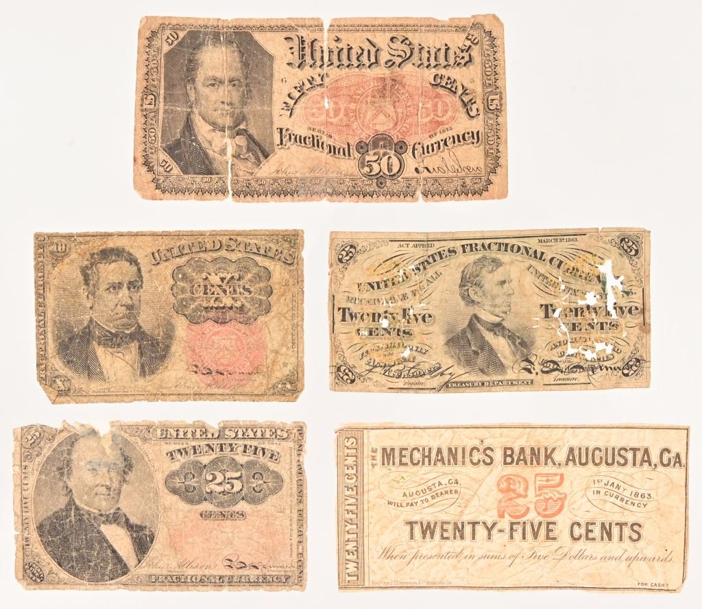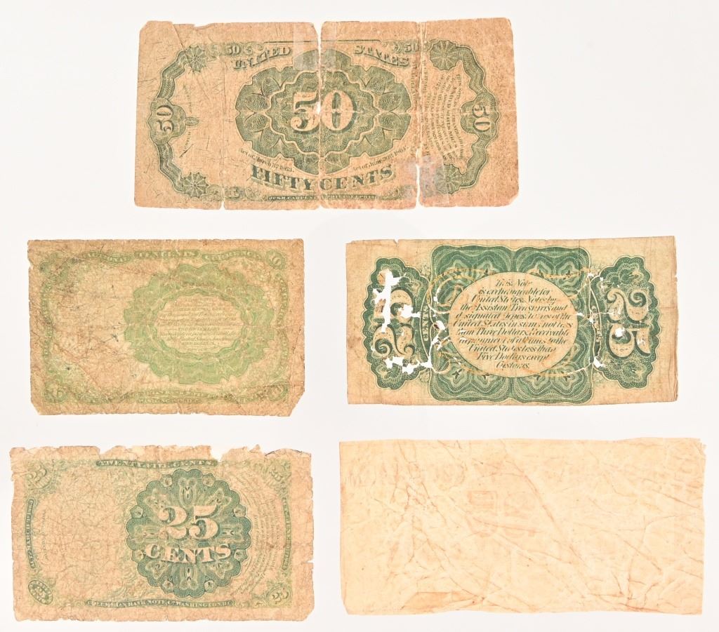 (1) Fifty Cent, (3) Twenty Five Cent & (1) Ten Cent.