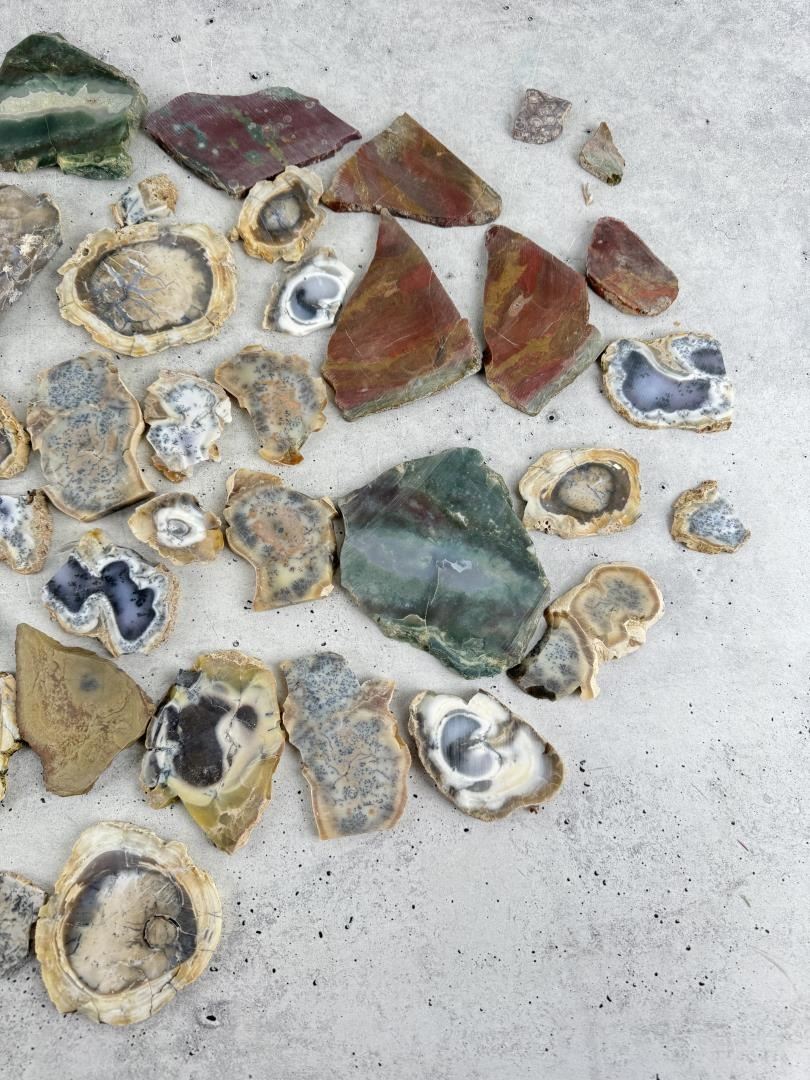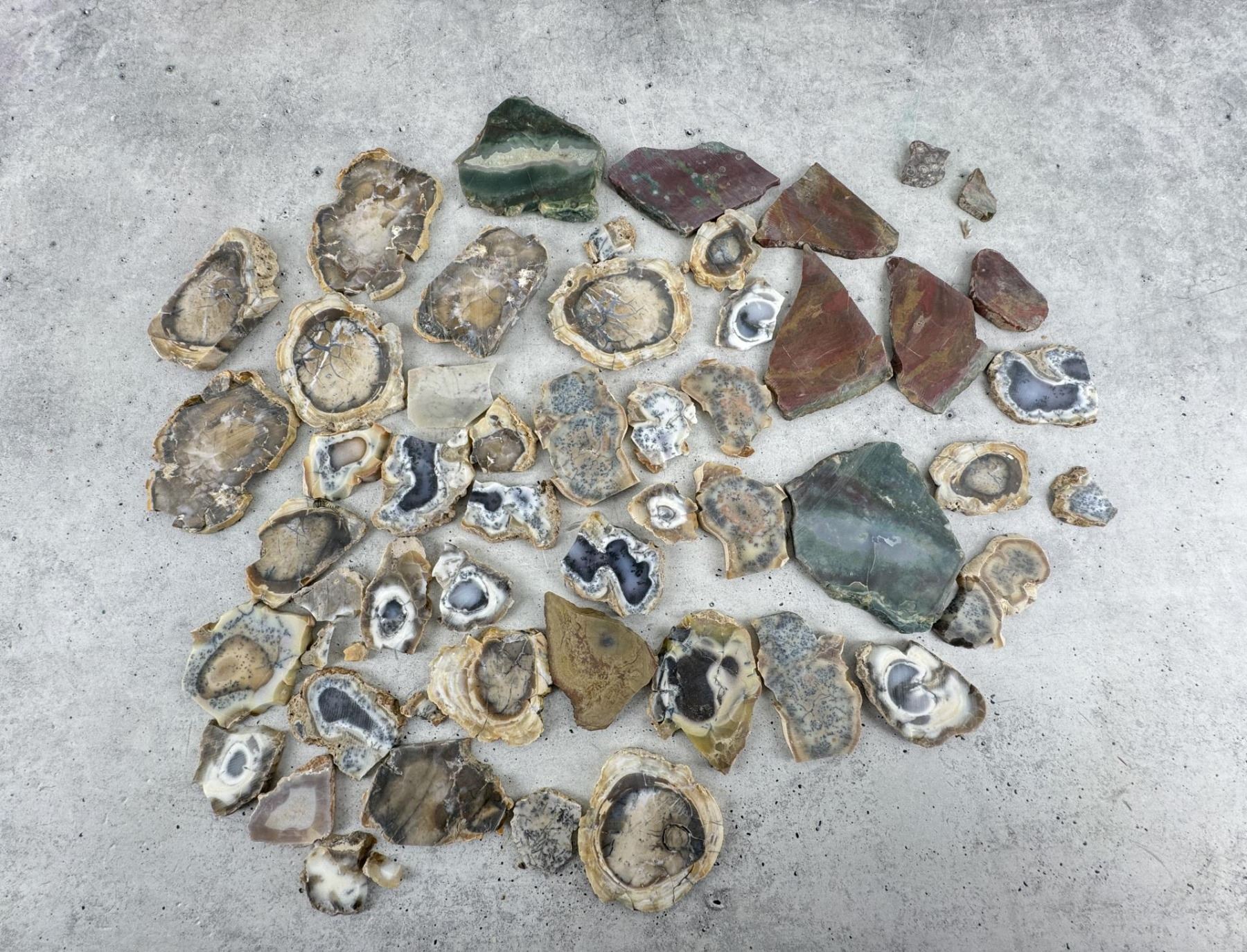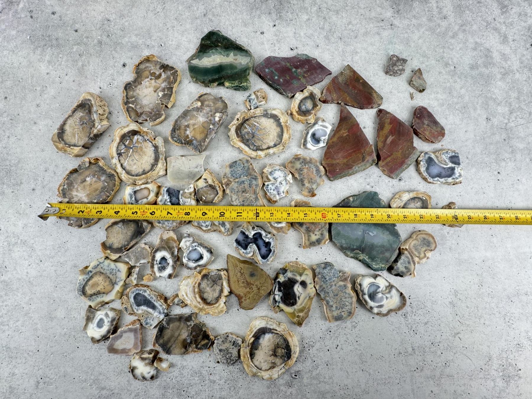 Includes jasper, agate, and petrified wood. 5.6 lbs. Provenance: From the estate of Moosehead Gallery rock shop in Hamilton, Montana.