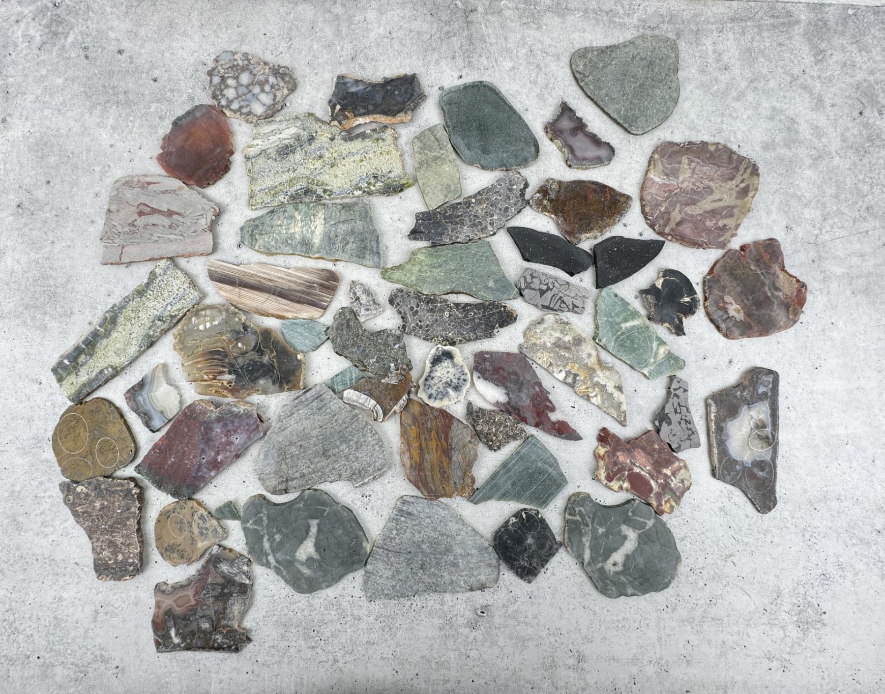 Includes agate, petrified wood, and jasper. 7.6 lbs. Provenance: From the estate of Moosehead Gallery rock shop in Hamilton, Montana.