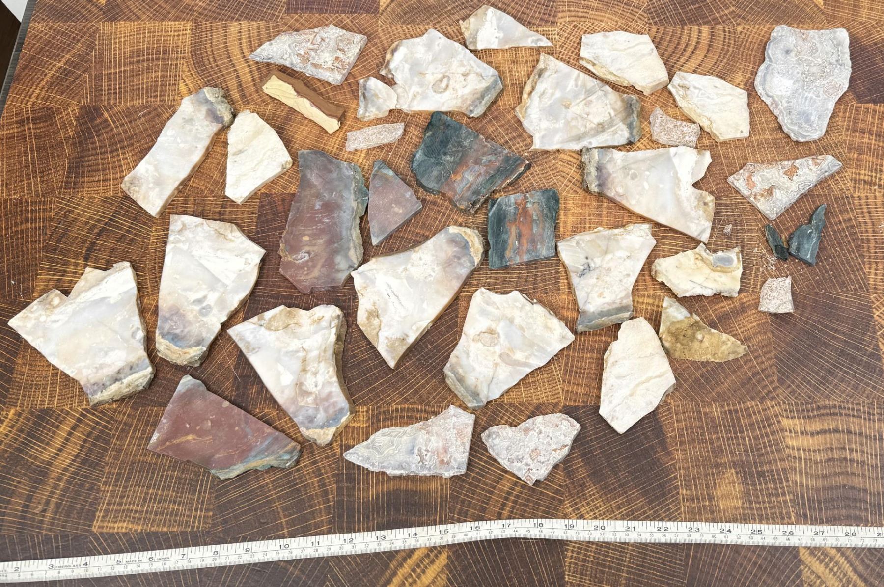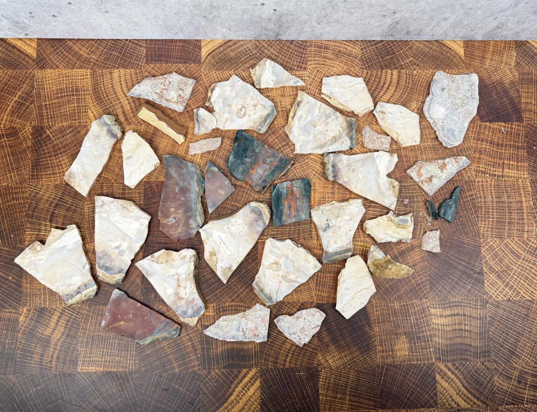 Includes jasper and petrified wood. 6.4 lbs total weight. Provenance: From the estate of Moosehead Gallery rock shop in Hamilton, Montana.