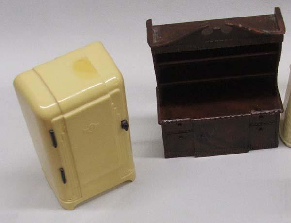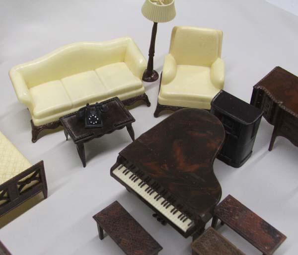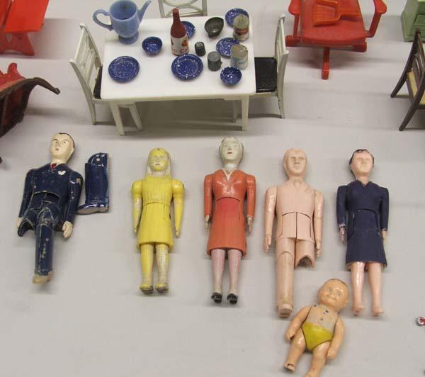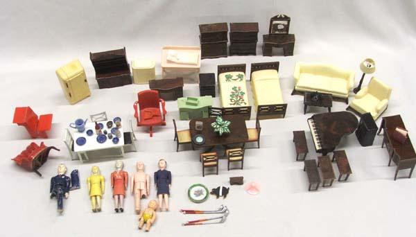 Collection Of ''Renwal'' Dolls Furniture Plus. Bag of miniatures, 37 pieces furniture and 6 dolls. The sofa measures approx. 2''H x 5''L x 2 1/3''D. Buyers Pay Actual Shipping and Handling Charges(see terms and conditions for more information).