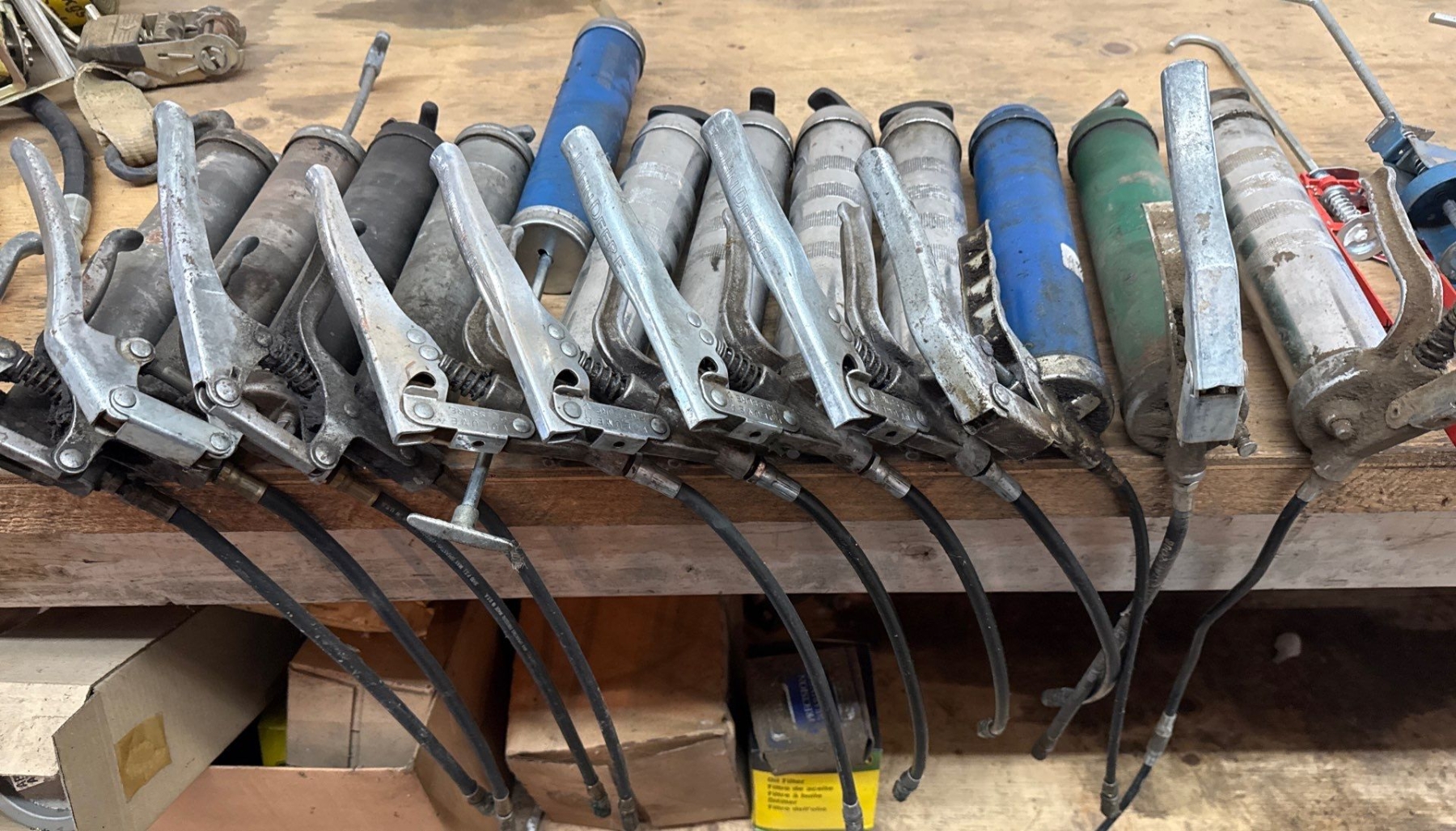 Collection Of Several Grease Guns For Machine Lubrication-Manual Hand-Powered Lever
