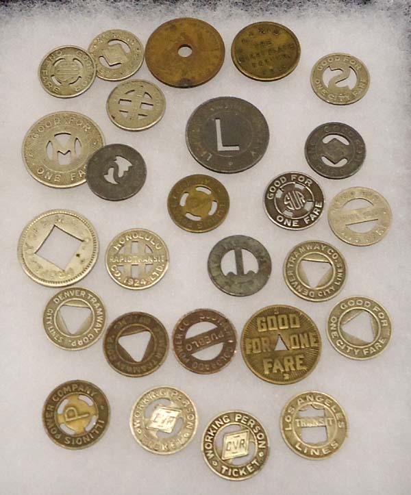 Collection Of Street Car Tokens. Largest token measures approx. 3/4'' Diameter. Buyers Pay Actual Shipping and Handling Charges(see terms and conditions for more information).