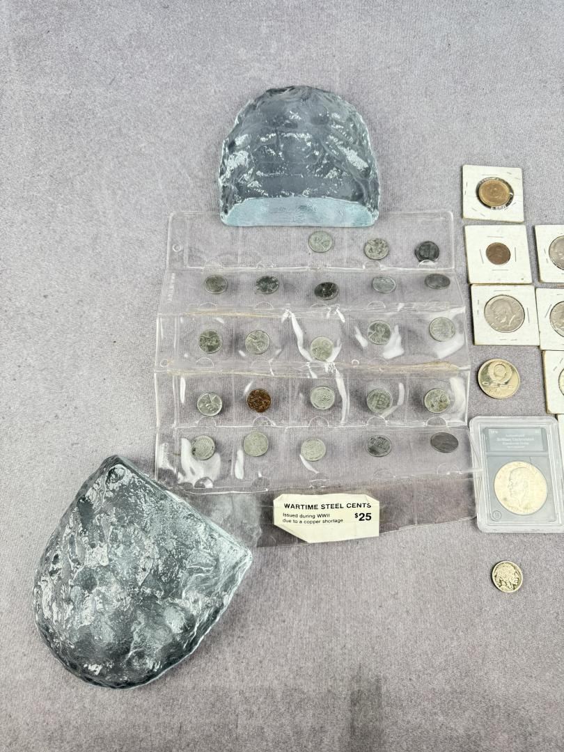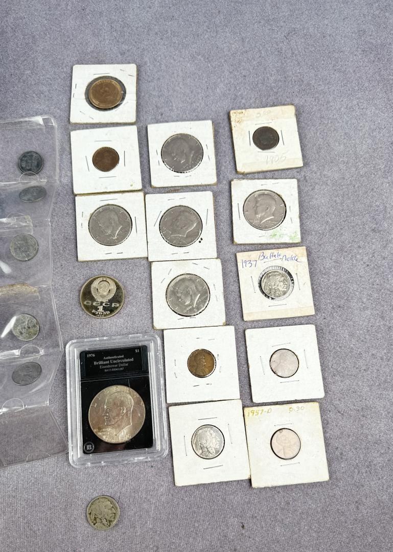 Includes one cent to one dollar coins as well as a Russian Ruble