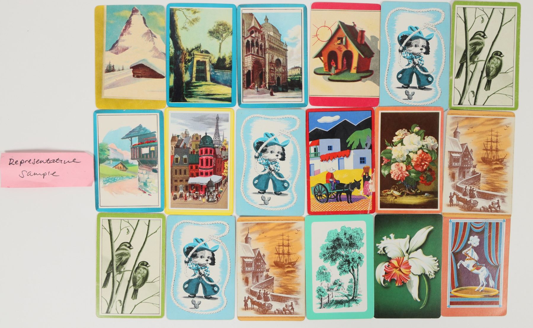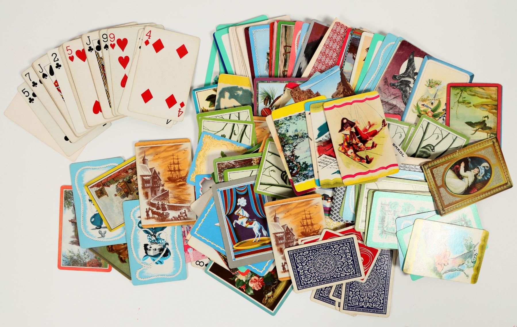 Lot of more 100. A combination of different playing cards, pictorial cards of animals, some calendars. Various conditions.