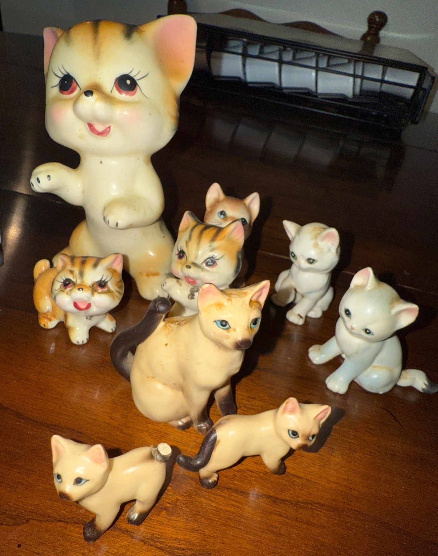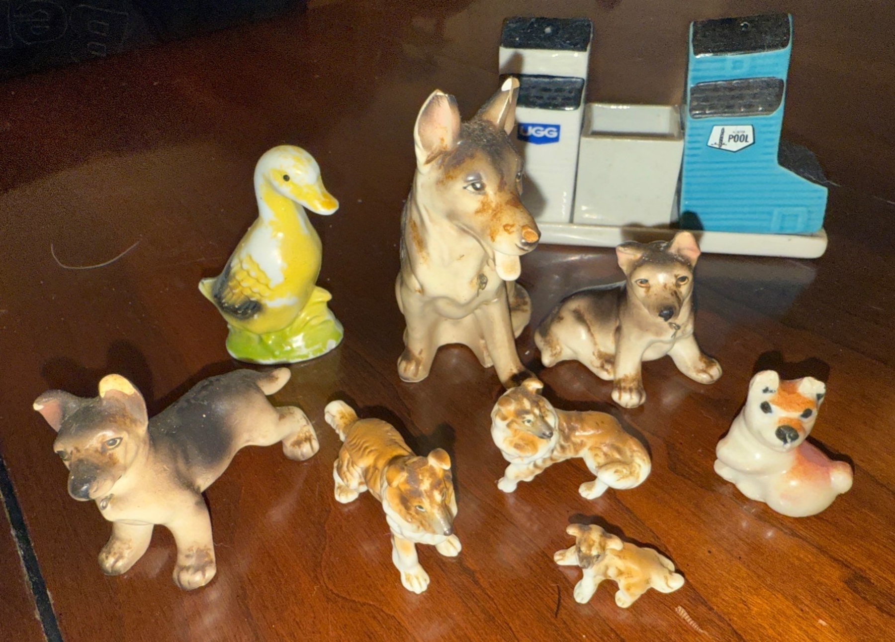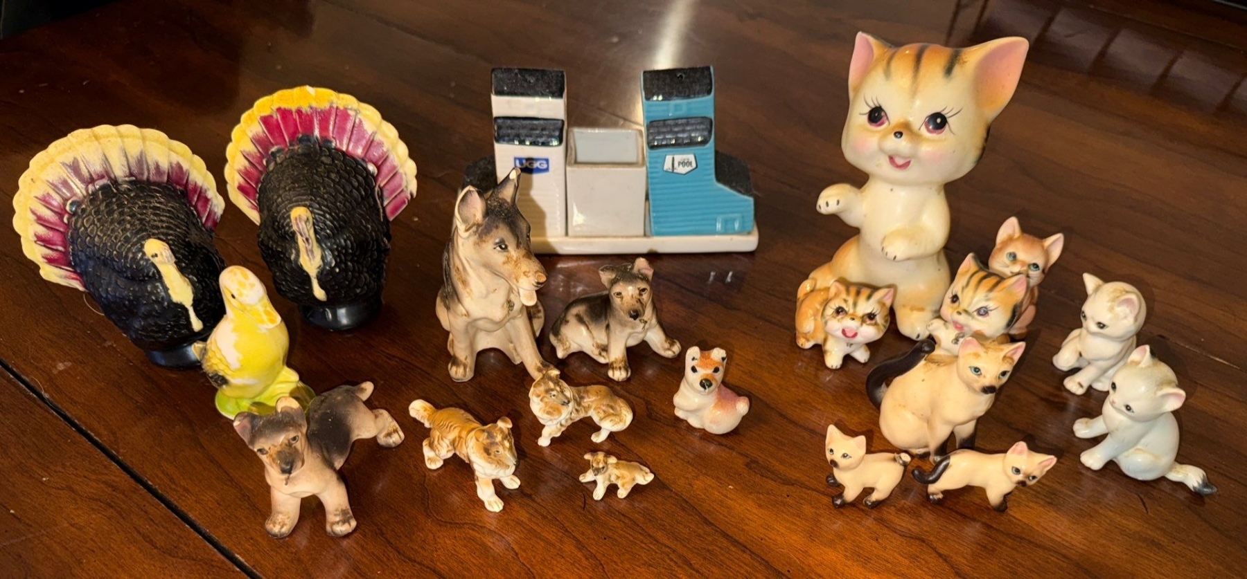Collection Of Vintage Ceramic Figurines- Lucky Cat, Dogs & Cats & Turkey SNP Shaker