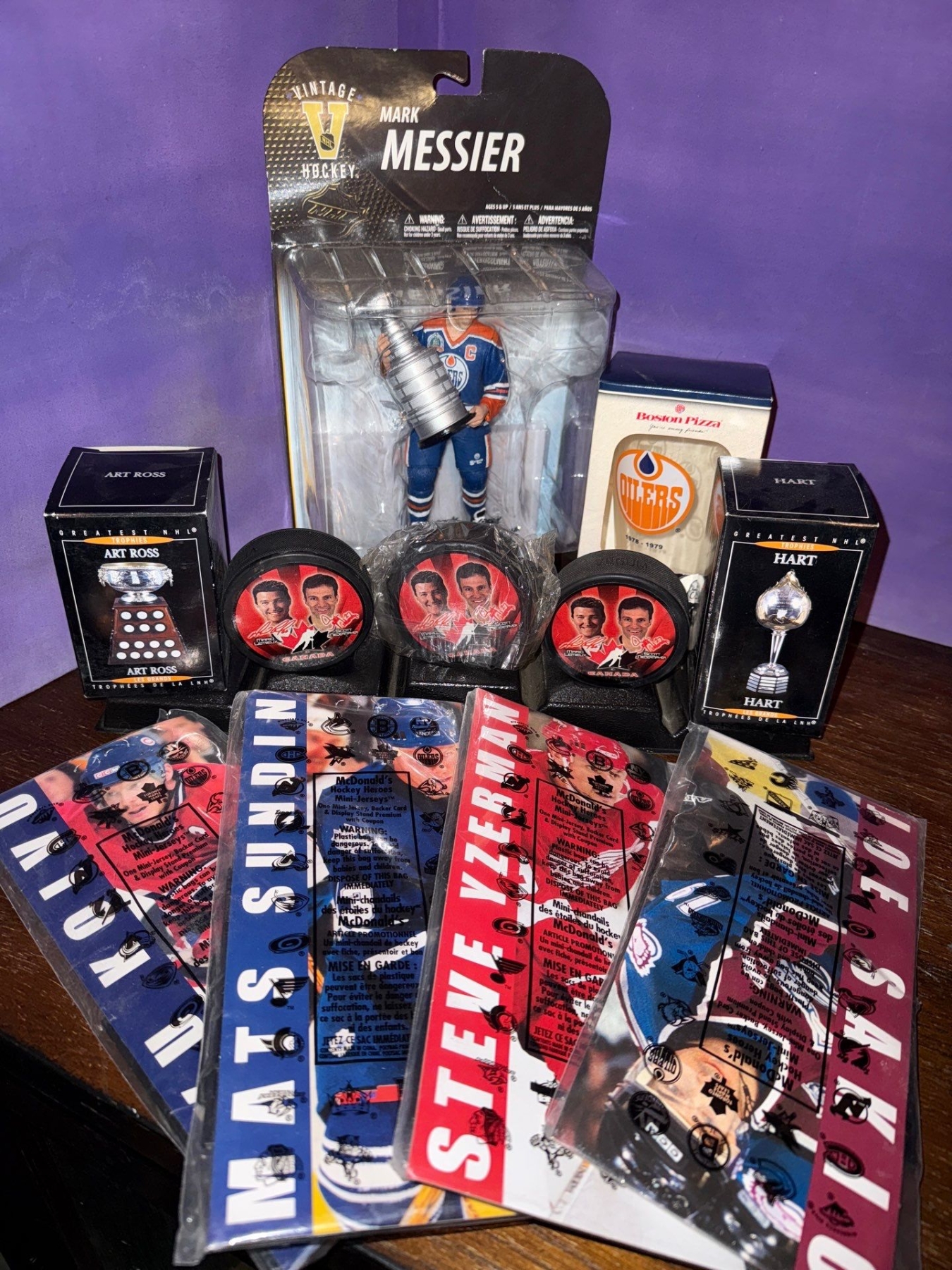 Collection Of Vintage Hockey Memorabilia-Action Figures & Trading Cards & Pucks