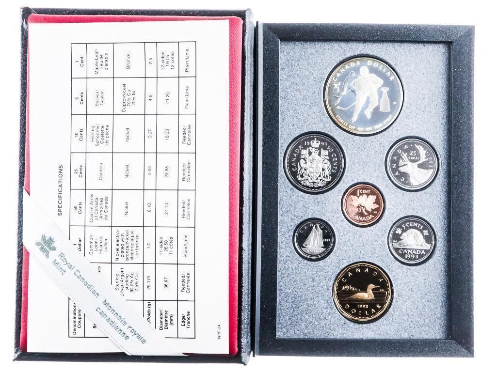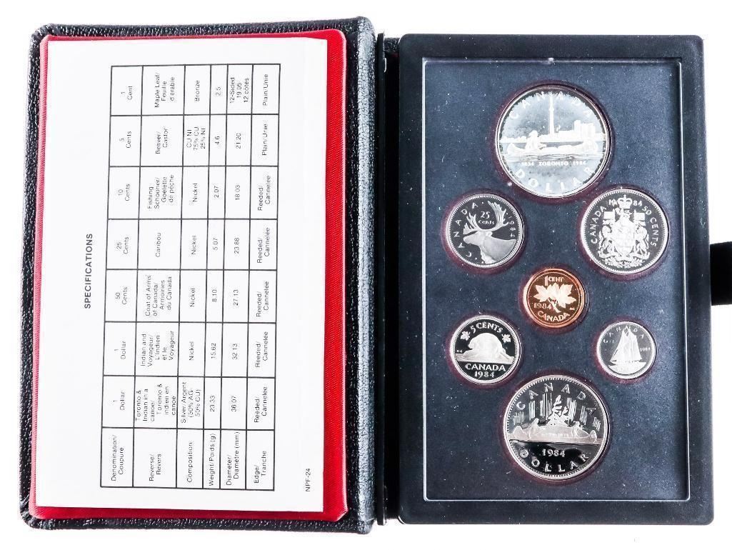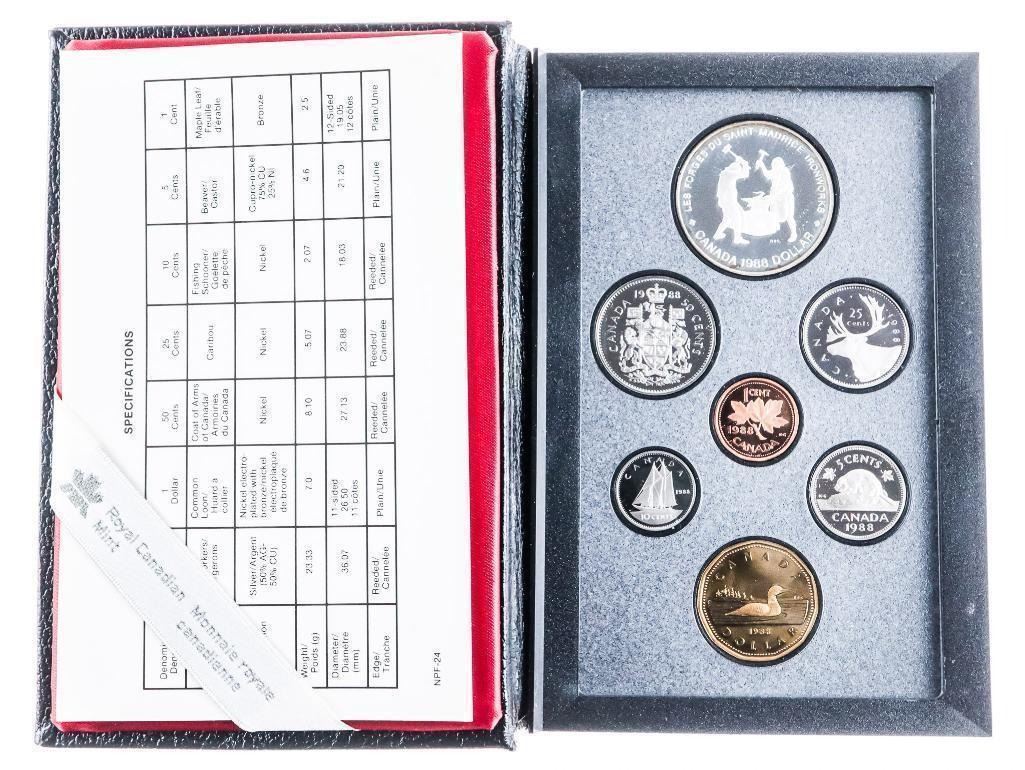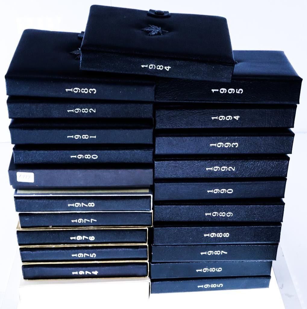 Collection - RCM Prestige & proof Double Dollar Mint Coins Sets - Black Leather Case, Dated from 1973 - 1995 (1991 Set Missing) (22 Sets)-304748