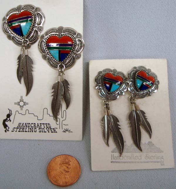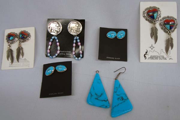 Collection Southwestern Pierced Earrings. Largest pair measures approx. 2 1/8'' long. One pair missing part. Turquoise, coral, Indian head nickle, etc. Buyers Pay Actual Shipping and Handling Charges(see terms and conditions for more information).