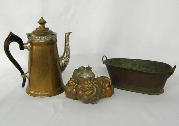 Collection Vintage Copper Tea Pot, Bowl, Molds