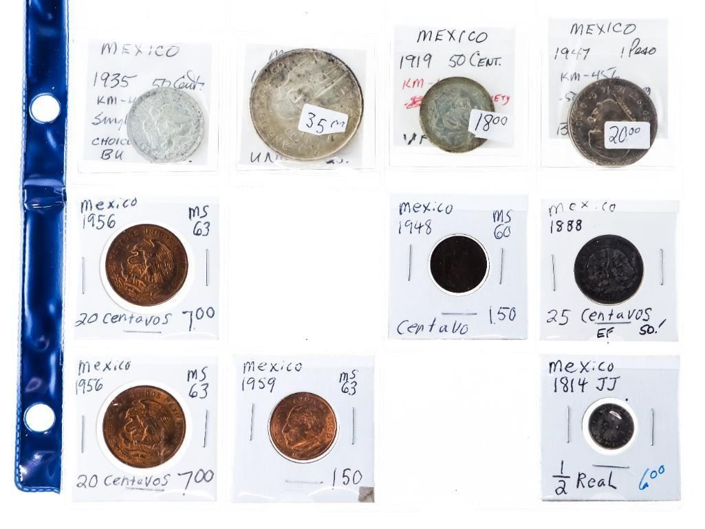 Collection of 10 Coins - MEXICO w/ Silver 1800's - 1900's