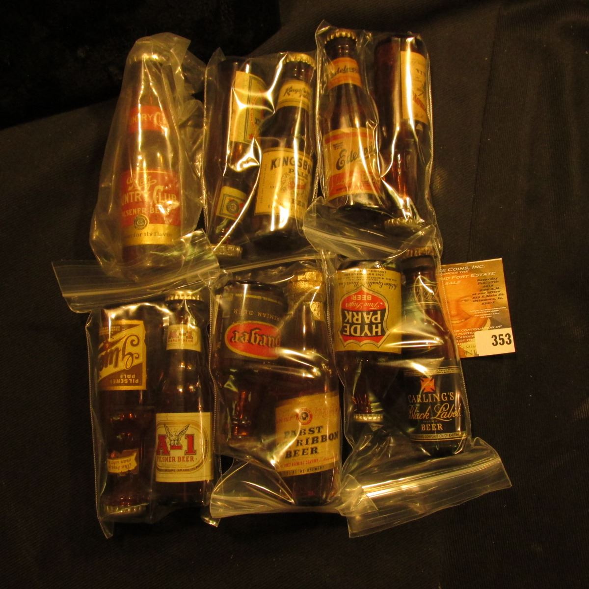Collection of (11) Different miniature Whiskey, Beer, or Liquor Bottles.