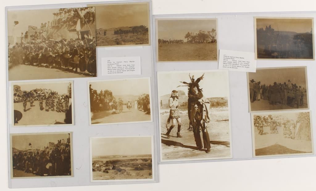 By Harmon Percy Marble. Depicting Hopi dancers at a ceremonial dance.