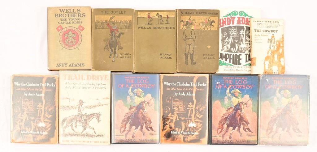 "The Log of a Cowboy" 1927 First Edition. "The Outlet" 1905 First Edition. "Wells Brothers" 1911 First Edition. (2)"Why The Chisholm Trail Forks" 1956 First Editions. "The Young Cattle Kings" 1911 First Edition 3rd print.